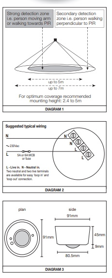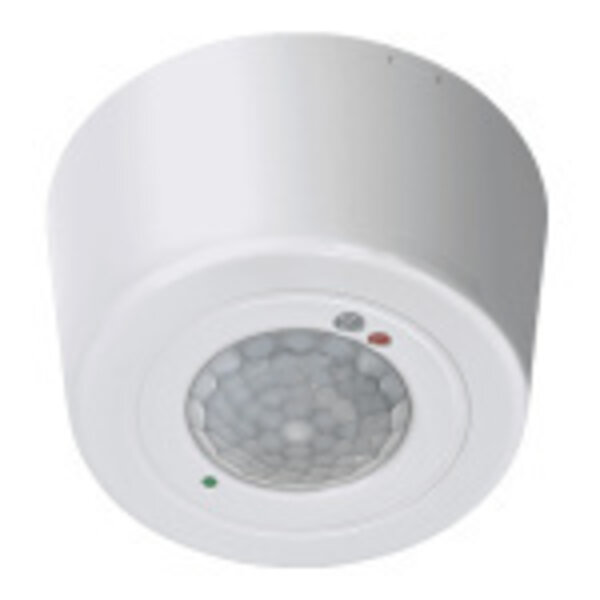 Compacte opbouw sensor die zowel beweging als lichtsterkte registreert. Detecteert rondom. Hoogte 2,5 tot 5 meter.