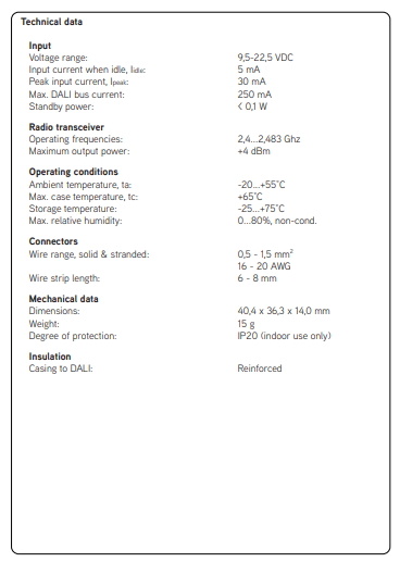 Casambi Bluetooth controller geschikt voor het uitlezen van DALI sensoren, eventueel gecombineerd met het aansturen van Dali gestuurde LED drivers.