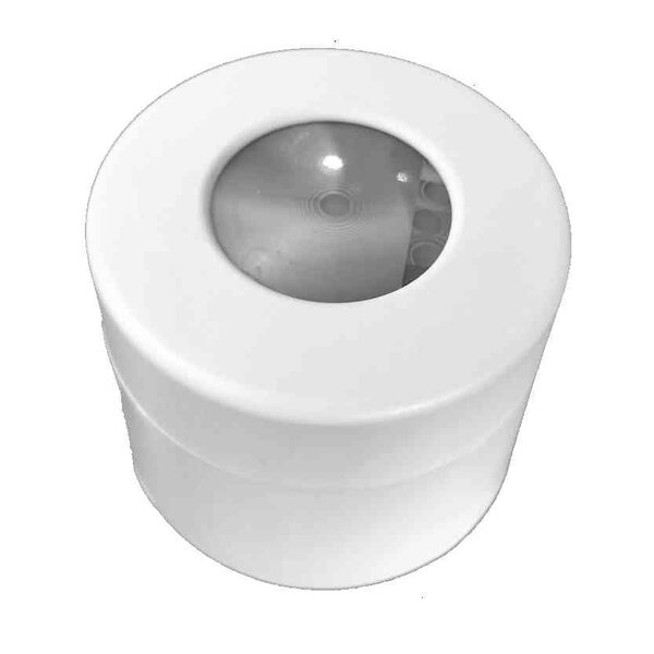 Compacte opbouw sensor die zowel beweging als lichtsterkte registreert met een smal en rond detectie-bereik. Erg geschikt voor gebruik in hoge ruimten zoals magazijnen.