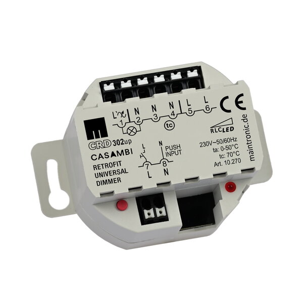 CRD302 - 300W Casambi Retrofit Dimmer. Eén kanaals fasedimmer voor dimmen van van R, L, C inclusief LED-retrofitlampen.